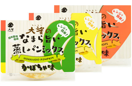 野菜フレークだけでなく、生のとうもろこしをそのままレトルトパウチにしたものや、米粉と野菜フレークを使った蒸しパンミックスなども販売しております。